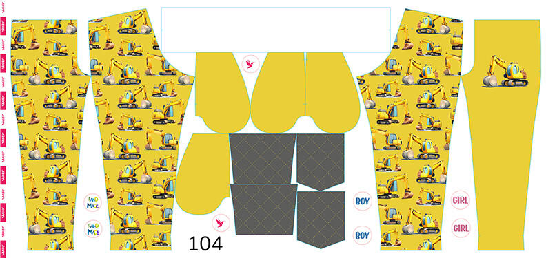 Takoy Panel szabásmintával 104 softshell nadrágra kotrógépek sárga