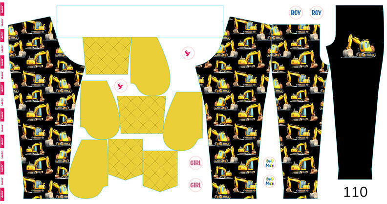 Egy egyedi termékcsalád, melyet az általunk gyártott előre kinyomtatott nadrág szabásminta panelek alkotnak, megtalálható webshopunkban. Egy téli softshellből készült panel, amelyre egy vadonatúj, újratervezett és tökéletesített Adam/Eva szabásmintát nyomtattunk ki a gyereknadrágok megvarrására. A softshell nadrág eredeti szabását kissé leszűkítettük és átalakítottuk, hogy tökéletesen illeszkedjen, kérjük ezért, ellenőrizd a mérettáblázatot. A szabásmintához meg kell vásárolni a gumit és a passzét a derékrészhez. A passzé szabásmintája a kinyomtatott panelen található meg, az szerint kell kivágni majd a passzét. Nem kell többé azon aggódnod, hogy újra és újra meg kell rajzolnod a szabásmintát, mivel elég csak kivágnod és összevarrnod a paneleket! Paneleink nemcsak a kezdőknek kínálnak megoldást, akiknek nincs elég tapasztalatuk a szabásban, hanem a gyakorlott varrónőknek is, akik időt szeretnének spórolni azzal, hogy nem kell újra rajzolniuk a szabásmintát. A Softshell egy praktikus, légáteresztő és vízálló anyag. A Softshell három rétegből áll: termoaktív anyagból, puha fleece szigetelő rétegből, külső vízálló membránból. Az anyagot leggyakrabban a felsőruházat készítéséhez használják, az anyag ellenáll az időjárásnak, a szélnek, az esőnek ... Ezt a típusú anyagot a saját nyomtatóinkban nyomtatjuk a Takoy központjában. A mintát tervezőink a Takoyban hozzák létre, ez nem másolható és nem rajzolható újra. Az újrarajzolt szabásmintát nem lehet felhasználni más termékek varrására, illetve a szabásminta elektronikus vagy nyomtatott formában történő továbbértékesítésére sem.