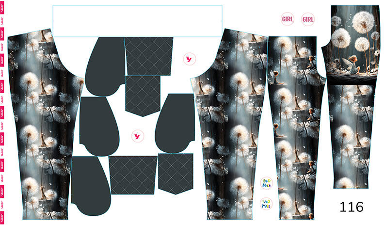Takoy Panel szabásmintával 116 softshell nadrágra pitypang tündér