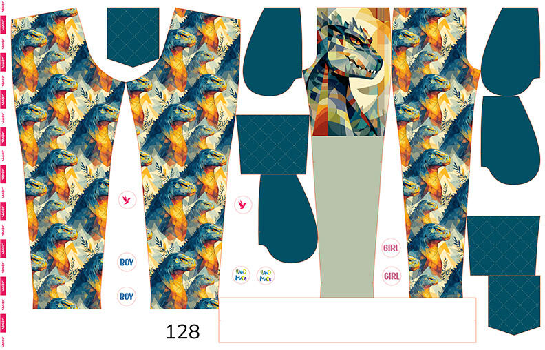 Egy egyedi termékcsalád, melyet az általunk gyártott előre kinyomtatott nadrág szabásminta panelek alkotnak, megtalálható webshopunkban. Egy téli softshellből készült panel, amelyre egy vadonatúj, újratervezett és tökéletesített Adam/Eva szabásmintát nyomtattunk ki a gyereknadrágok megvarrására. A softshell nadrág eredeti szabását kissé leszűkítettük és átalakítottuk, hogy tökéletesen illeszkedjen, kérjük ezért, ellenőrizd a mérettáblázatot. A szabásmintához meg kell vásárolni a gumit és a passzét a derékrészhez. A passzé szabásmintája a kinyomtatott panelen található meg, az szerint kell kivágni majd a passzét. Nem kell többé azon aggódnod, hogy újra és újra meg kell rajzolnod a szabásmintát, mivel elég csak kivágnod és összevarrnod a paneleket! Paneleink nemcsak a kezdőknek kínálnak megoldást, akiknek nincs elég tapasztalatuk a szabásban, hanem a gyakorlott varrónőknek is, akik időt szeretnének spórolni azzal, hogy nem kell újra rajzolniuk a szabásmintát. A Softshell egy praktikus, légáteresztő és vízálló anyag. A Softshell három rétegből áll: termoaktív anyagból, puha fleece szigetelő rétegből, külső vízálló membránból. Az anyagot leggyakrabban a felsőruházat készítéséhez használják, az anyag ellenáll az időjárásnak, a szélnek, az esőnek ... Ezt a típusú anyagot a saját nyomtatóinkban nyomtatjuk a Takoy központjában. A mintát tervezőink a Takoyban hozzák létre, ez nem másolható és nem rajzolható újra. Az újrarajzolt szabásmintát nem lehet felhasználni más termékek varrására, illetve a szabásminta elektronikus vagy nyomtatott formában történő továbbértékesítésére sem.