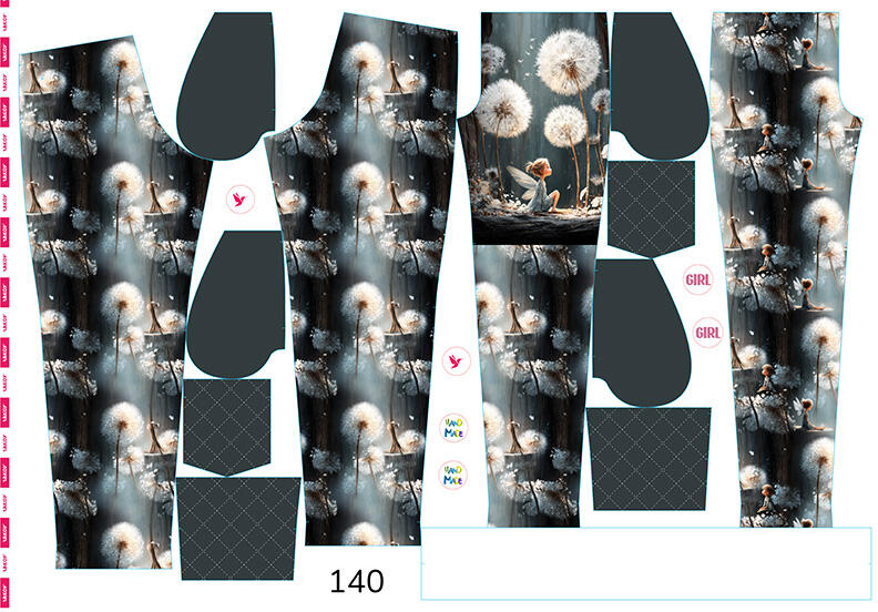 Takoy Panel szabásmintával 140 softshell nadrágra pitypang tündér