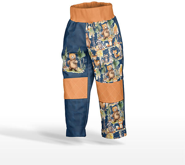 Takoy Panel szabásmintával 146 softshell nadrágra erdei állatok kalandjai sötétkék