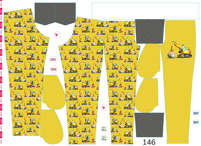 Takoy Panel szabásmintával 146 softshell nadrágra kotrógépek sárga