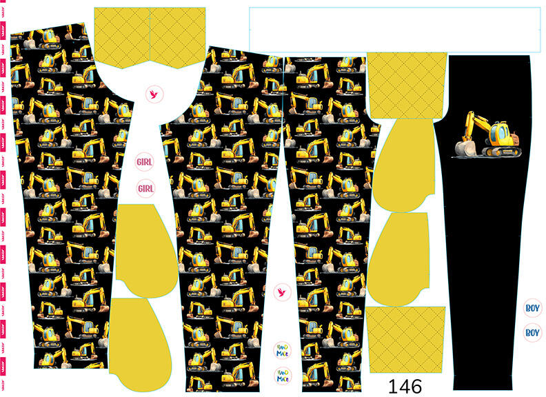 A nadrág szabásmintája az alsó passzé nélkül készült, de ha ezt bele szeretnéd varrni, akkor a nadrág hosszát a passzé magasságával kell megrövidítened, valamint 1 cm-t kell még levágni a varrásráhagyásból (mivel az aláhajtásnál lévő rész nagyobb). Természetesen a nadrágot úgy alakítottuk ki, hogy a magasabb gyerekeknek is megfeleljen, akiknek nincs szokásos standard testmagasságuk. Ha a gyermek alacsonyabb, a nadrág hosszát tetszés szerint lehet állítani és rövidíteni. A szélessége pontosan illeszkedik a termékhez mellékelt táblázat szerint. Nagyon fontos, hogy a derékszélességet helyesen mérjük meg, mert a gumiszalagot fogjuk a passzéba illeszteni. Ha a gumi laza a passzéban, a nadrág le fog esni.