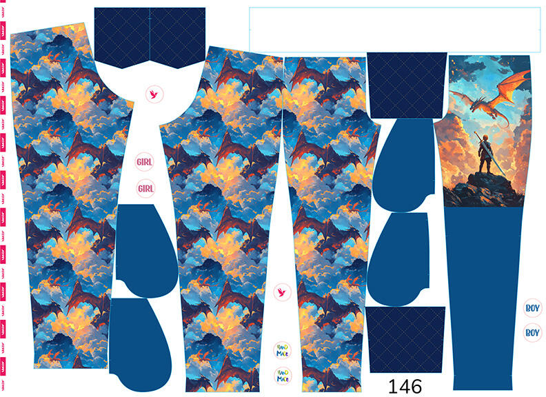 A nadrág szabásmintája az alsó passzé nélkül készült, de ha ezt bele szeretnéd varrni, akkor a nadrág hosszát a passzé magasságával kell megrövidítened, valamint 1 cm-t kell még levágni a varrásráhagyásból (mivel az aláhajtásnál lévő rész nagyobb). Természetesen a nadrágot úgy alakítottuk ki, hogy a magasabb gyerekeknek is megfeleljen, akiknek nincs szokásos standard testmagasságuk. Ha a gyermek alacsonyabb, a nadrág hosszát tetszés szerint lehet állítani és rövidíteni. A szélessége pontosan illeszkedik a termékhez mellékelt táblázat szerint. Nagyon fontos, hogy a derékszélességet helyesen mérjük meg, mert a gumiszalagot fogjuk a passzéba illeszteni. Ha a gumi laza a passzéban, a nadrág le fog esni.