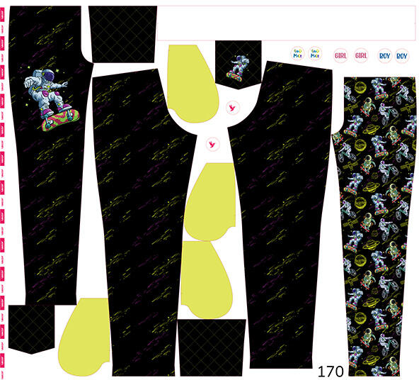 A nadrág szabásmintája az alsó passzé nélkül készült, de ha ezt bele szeretnéd varrni, akkor a nadrág hosszát a passzé magasságával kell megrövidítened, valamint 1 cm-t kell még levágni a varrásráhagyásból (mivel az aláhajtásnál lévő rész nagyobb). Természetesen a nadrágot úgy alakítottuk ki, hogy a magasabb gyerekeknek is megfeleljen, akiknek nincs szokásos standard testmagasságuk. Ha a gyermek alacsonyabb, a nadrág hosszát tetszés szerint lehet állítani és rövidíteni. A szélessége pontosan illeszkedik a termékhez mellékelt táblázat szerint. Nagyon fontos, hogy a derékszélességet helyesen mérjük meg, mert a gumiszalagot fogjuk a passzéba illeszteni. Ha a gumi laza a passzéban, a nadrág le fog esni.