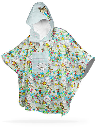 Takoy Panel szabásmintával 86-110-es méretű gyerek esőkabáthoz Iris - gyerekrajz az udvaron