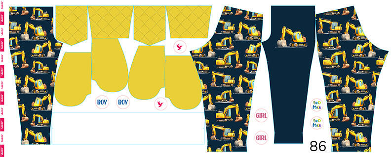 Egy egyedi termékcsalád, melyet az általunk gyártott előre kinyomtatott nadrág szabásminta panelek alkotnak, megtalálható webshopunkban. Egy téli softshellből készült panel, amelyre egy vadonatúj, újratervezett és tökéletesített Adam/Eva szabásmintát nyomtattunk ki a gyereknadrágok megvarrására. A softshell nadrág eredeti szabását kissé leszűkítettük és átalakítottuk, hogy tökéletesen illeszkedjen, kérjük ezért, ellenőrizd a mérettáblázatot. A szabásmintához meg kell vásárolni a gumit és a passzét a derékrészhez. A passzé szabásmintája a kinyomtatott panelen található meg, az szerint kell kivágni majd a passzét. Nem kell többé azon aggódnod, hogy újra és újra meg kell rajzolnod a szabásmintát, mivel elég csak kivágnod és összevarrnod a paneleket! Paneleink nemcsak a kezdőknek kínálnak megoldást, akiknek nincs elég tapasztalatuk a szabásban, hanem a gyakorlott varrónőknek is, akik időt szeretnének spórolni azzal, hogy nem kell újra rajzolniuk a szabásmintát. A Softshell egy praktikus, légáteresztő és vízálló anyag. A Softshell három rétegből áll: termoaktív anyagból, puha fleece szigetelő rétegből, külső vízálló membránból. Az anyagot leggyakrabban a felsőruházat készítéséhez használják, az anyag ellenáll az időjárásnak, a szélnek, az esőnek ... Ezt a típusú anyagot a saját nyomtatóinkban nyomtatjuk a Takoy központjában. A mintát tervezőink a Takoyban hozzák létre, ez nem másolható és nem rajzolható újra. Az újrarajzolt szabásmintát nem lehet felhasználni más termékek varrására, illetve a szabásminta elektronikus vagy nyomtatott formában történő továbbértékesítésére sem.
