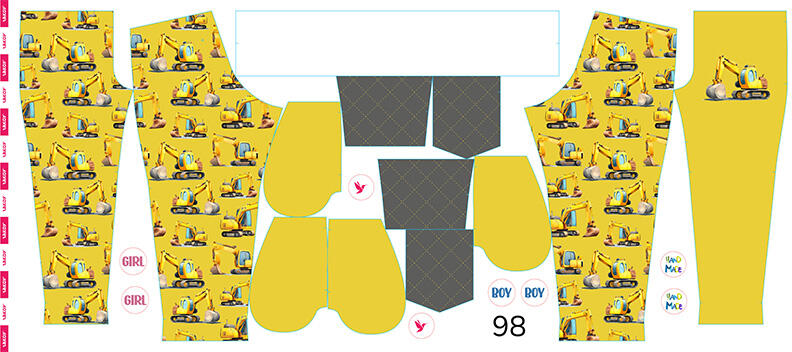Takoy Panel szabásmintával 98 softshell nadrágra kotrógépek sárga