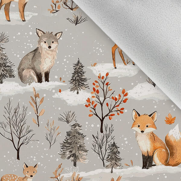 Takoy Téli softshell anyag állatkák szürke erdőben