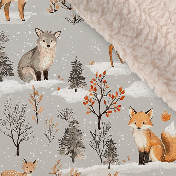 Takoy Téli softshell báránybundával állatkák szürke erdőben - az anyag hosszában nyomtatott minta